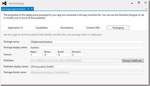 Für Push Notification muss die Windows Store App mit dem Store assoziert werden, und in den Push Services die Secrets eingetragen.